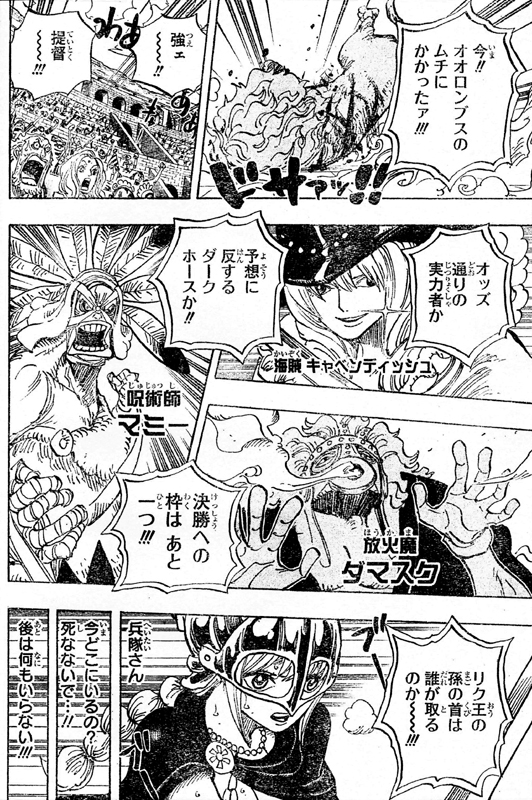 One piece 733「兵隊さんの欲しいもの」 <最新話のネタバレを含みますので注意してください。> ワンピース 733話のマジメ考察記事です。 今回も考察材料が盛りだくさんでした。 さて、シーンはコロシアムdブロック。 レベッカとスレイマンが剣を交えています。Watch all episodes of One Piece and follow Monkey D Luffy on his quest to claim the greatest treasure, the legendary One Piece, and become the Pirate KingManga Raw 漫画、無料で読め, 無料漫画(マンガ)読む, 漫画スキャン王